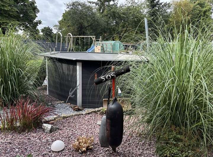 Der Garten ist fast nicht einsehbar und mit größtenteils Rasenfläche, Hecke, Sträucher, sowie Ziergehölzen bepflanzt.