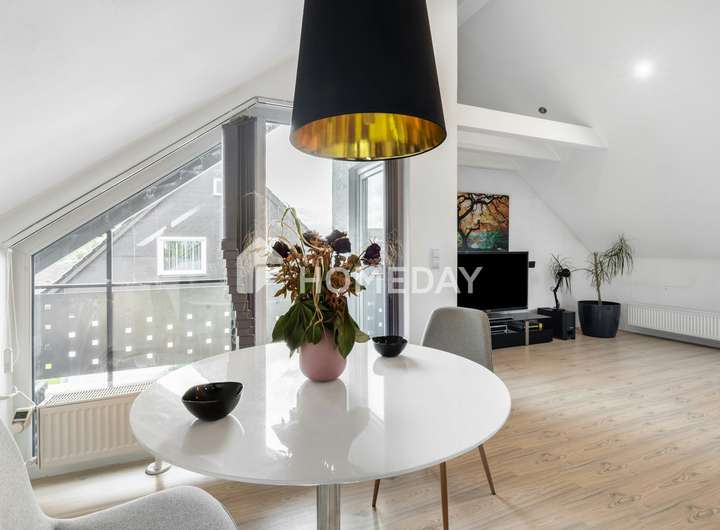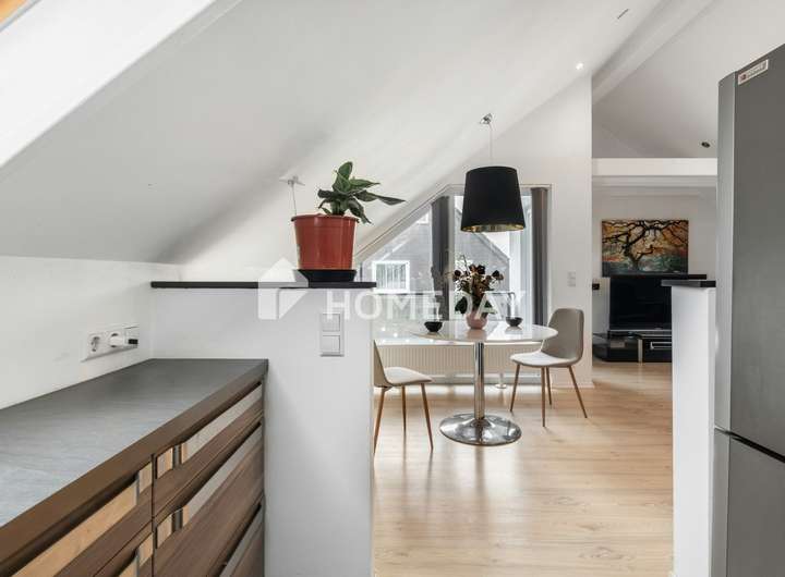 Diese Dachgeschosswohnung ist kein Zufallstreffer, sondern ein Zuhause mit Charakter. Im Dachgeschoss eines gepflegten Zweifamilienhauses aus dem Jahr 1967 erwartet Sie eine kernsanierte Einheit, die 2015 und 2016 modernisiert und mit viel Liebe zum Detail gestaltet wurde. Auf ca. 85 Quadratmetern vereint sie Design, Komfort und eine Atmosphäre, die sofort ankommt.