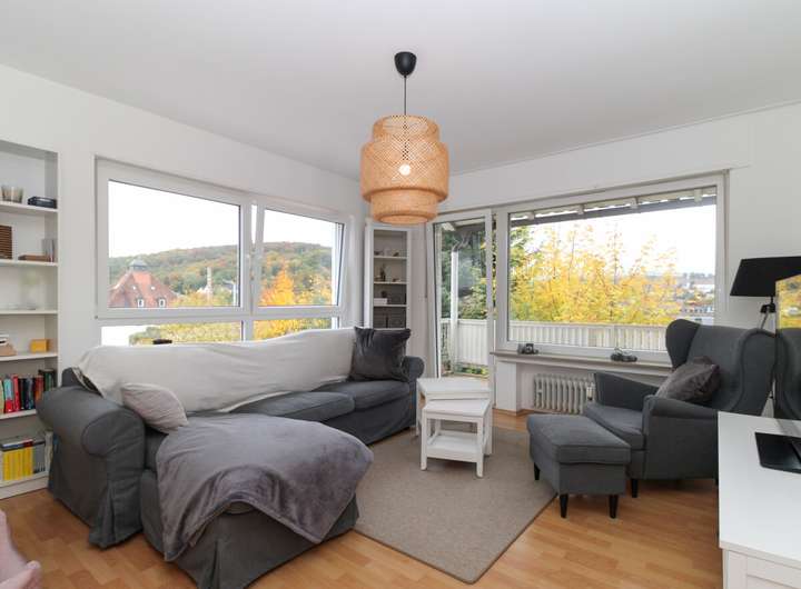 Die 2-Zimmer-Wohnung befindet sich im 1. Obergeschoss und bietet eine Wohnfläche von rund 61 m² mit durchdachtem Grundriss. Der helle Wohnbereich mit Zugang zum Balkon schafft ein angenehmes Wohngefühl und bietet einen herrlichen Weitblick über den Ort. Ergänzt wird die Wohnung durch ein Schlafzimmer, eine Küche mit Essbereich sowie ein Tageslichtbad mit Dusche und Waschmaschinenanschluss. Ein eigener Kellerraum und ein Außenstellplatz gehören ebenfalls zur Einheit.
