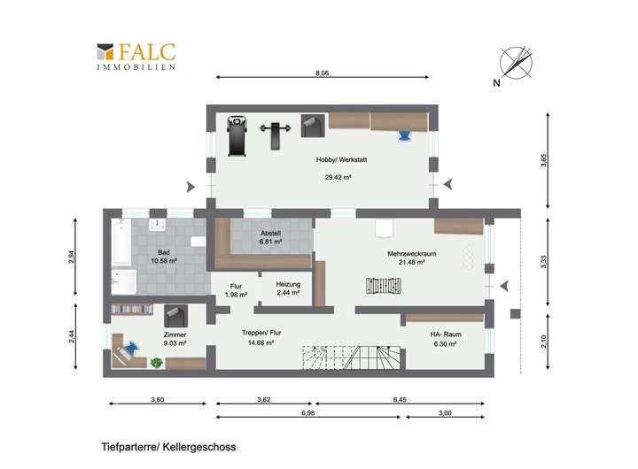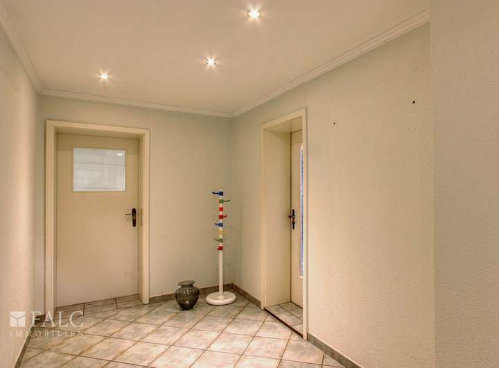 Das Haus verfügt zudem über ein teilweise zu Wohnzwecken ausgebautes Souterrain, das zusätzlichen Raum bietet. Hier finden Sie ein Büro, ein großzügiges Tageslichtbad mit Dusche und Wanne, den Heizungsraum, einen Hauswirtschaftsraum sowie einen großen Mehrzweckraum mit Abstellbereich. Ein separater Eingang ermöglicht den direkten Zugang zum Garten.