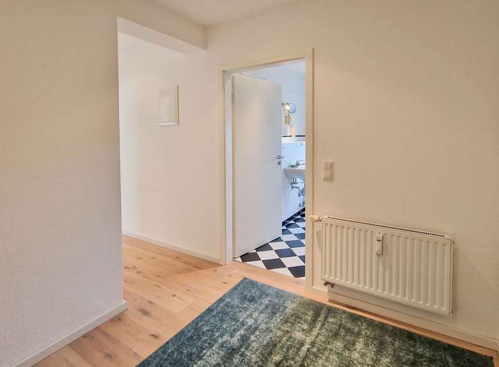 Die großzügige 3-Zimmer-Wohnung mit ca. 95 m² empfängt Sie mit einem einladenden Flur. Im gesamten Wohn- und Schlafbereich sowie im Eingangsbereich wurde hochwertiges Eiche-Rustikal-Parkett verlegt – hell, freundlich und wohnlich.