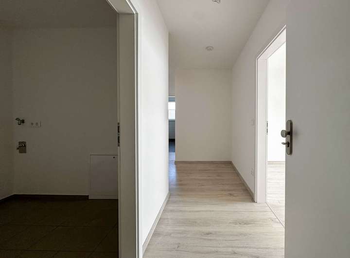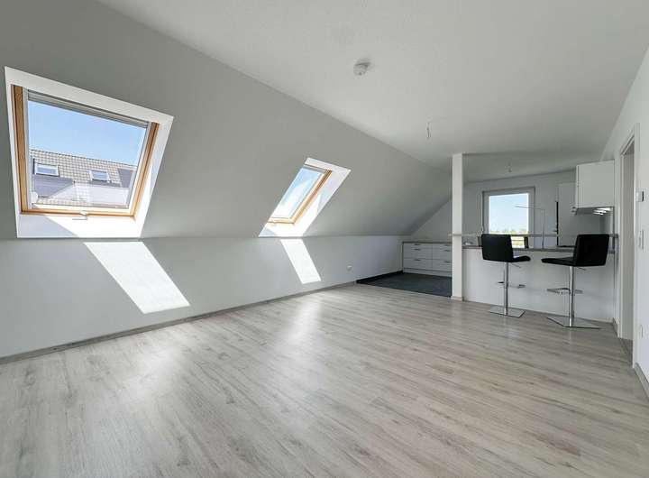 Edles Laminat in den Wohnräumen schafft eine warme, einladende Atmosphäre, während geschmackvolle Fliesen in Küche und Bad stilvolle Akzente setzen. Die untere Etage dieser charmanten Wohnung ist mit einer behaglichen Fußbodenheizung ausgestattet. Das großzügige Wohnzimmer bietet viel Platz für individuelle Gestaltungsmöglichkeiten und harmoniert perfekt mit der angrenzenden, großzügig geschnittenen Küche. Von hier aus gelangen Sie auf den großen Balkon, der zusätzlichen Freiraum zum Entspannen im Freien bietet.