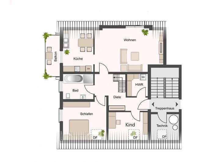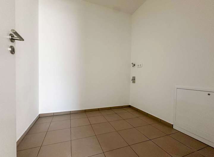Das Tageslichtbad ist ein echtes Highlight: Es ist sowohl mit einer Badewanne als auch mit einer ebenerdigen Dusche ausgestattet, was höchsten Komfort verspricht. Ein praktischer Wirtschaftsraum sorgt für ausreichend Stauraum und Platz für Waschmaschine und Trockner.