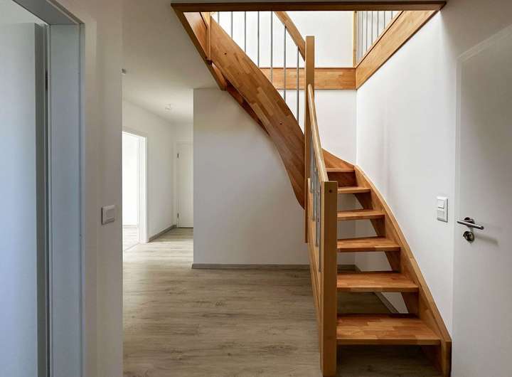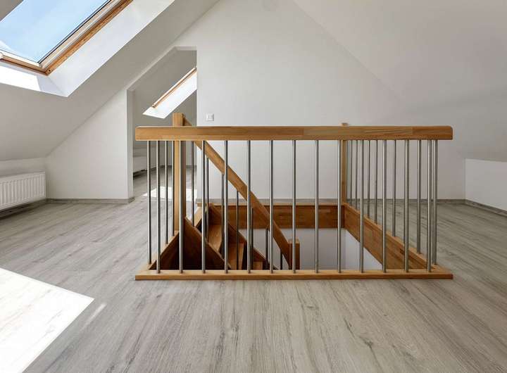 Über eine stilvolle Echtholztreppe erreichen Sie die weitläufige Galerie, die weiteren Freiraum bietet. Von hier aus gelangen Sie in ein zusätzliches Zimmer sowie in ein offenes Raumkonzept, das sich vielseitig nutzen lässt.