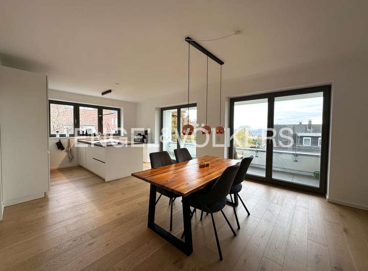 Diese moderne Wohnung befindet sich in einem gepflegten Wohnhaus aus dem Jahr 2018, das in einer der exklusivsten Gegenden am südöstlichen Stadtrand von Dortmund liegt. Die großzügig zur Sonnenseite ausgerichtete Terrasse lädt dazu ein, die besondere Lage zu genießen und den herrlichen Blick über das Ruhrtal zu schweifen. Vom Wohnbereich führt eine Verbindungstür direkt in ein großzügiges Schlafzimmer, das Ruhe und Komfort bietet. Das angrenzende Badezimmer ist mit hochwertigen Keramikfliesen ausgestattet, ergänzt durch ein separates Gäste-WC mit Dusche, und besticht durch klare, moderne Gestaltung. Über den Flur gelangt man in den lichtdurchfluteten, offenen Wohnbereich, der viel Platz für gemütliche Abende mit Familie und Freunden bietet. Die moderne Einbauküche mit angrenzendem Essbereich bietet reichlich Raum zum Kochen und Genießen und ermöglicht gleichzeitig den direkten Zugang auf den Balkon, der zu entspannten Stunden einlädt.