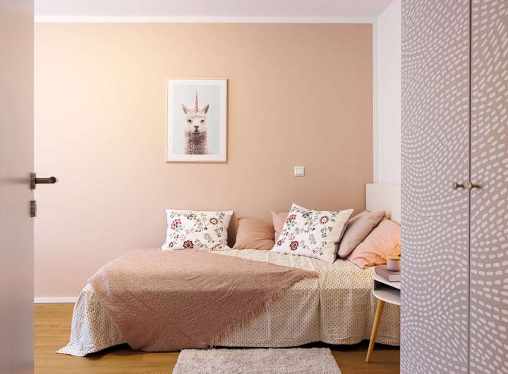 Robuste Vinylböden in warmer Holzoptik sorgen in allen Wohnräumen für ein stimmiges Gesamtbild und sind dabei besonders pflegeleicht. Die Wände sind mit hochwertigem Malervlies glatt verarbeitet – eine ideale Grundlage für vielfältige Einrichtungsstile.