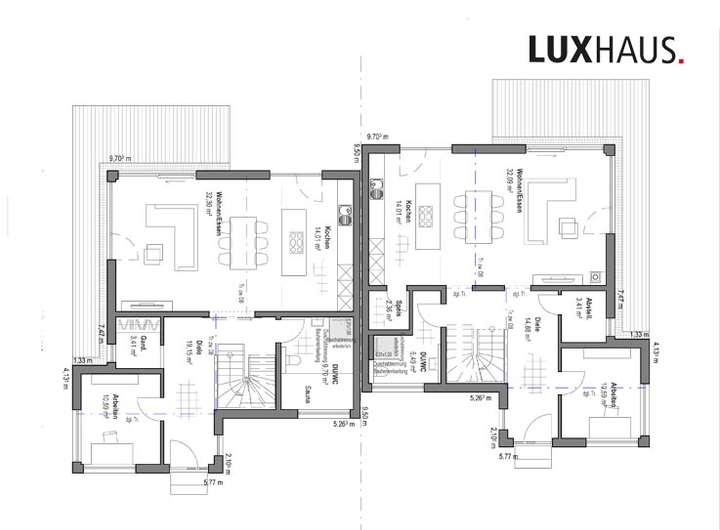 Die stilvolle Doppelhaushälfte ist ausgestattet mit Objekten deutscher Markenhersteller. Um Ihre individuelle Note zu betonen, laden wir Sie in unsere LUXHAUS Boutique ein - dort erwarten Sie unsere LUXHAUS Innenarchitekten, um mit Ihnen gemeinsam die Ausstattung festzulegen.