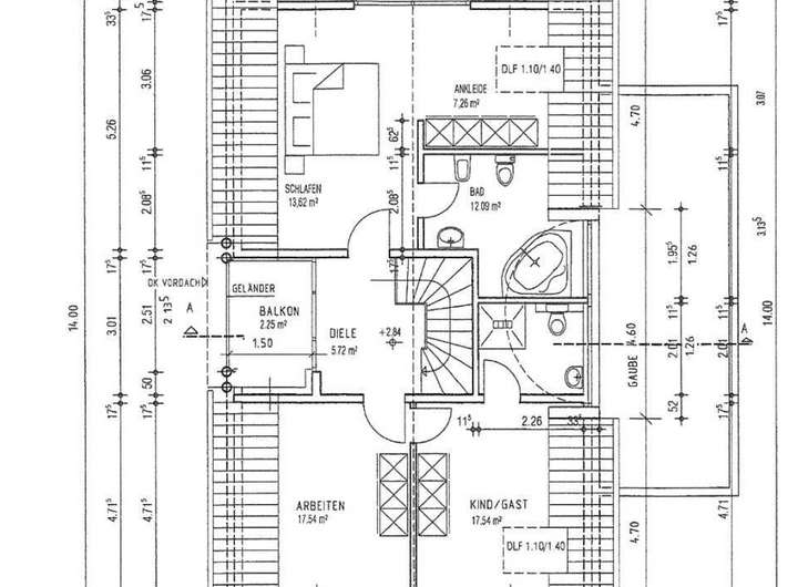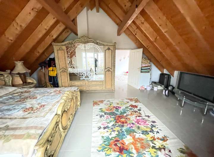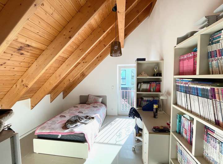 3-Schlafräume, Duschbad. Die Räume haben hier eine Deckenhöhe von ca.3-4m.