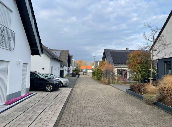 Einfamilienhäusern oder Doppelhaushälften mit gepflegten Gärten und Vorgärten. Für den schnellen Einkauf gibt es fußläufig einen Rewe-Markt und eine Aldi-Filiale.