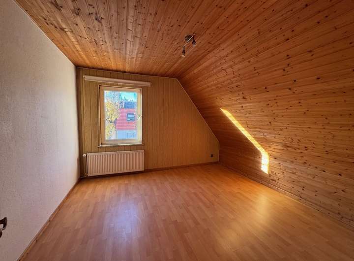Das voll ausgebaute Dachgeschoss schafft zusätzlichen Wohnraum, während die solide Massivbauweise des Hauses für Stabilität und Langlebigkeit sorgt.