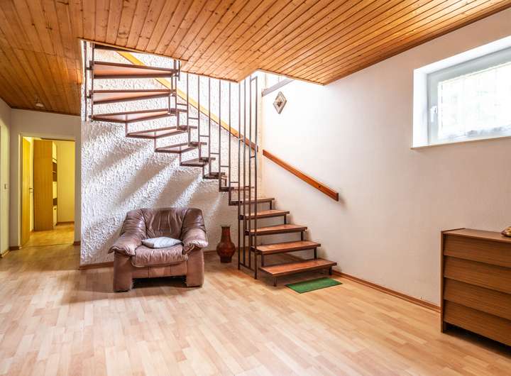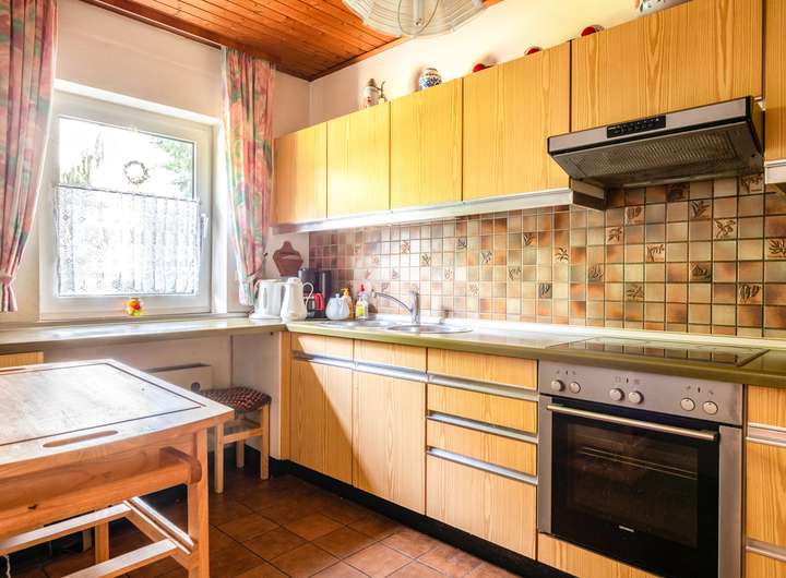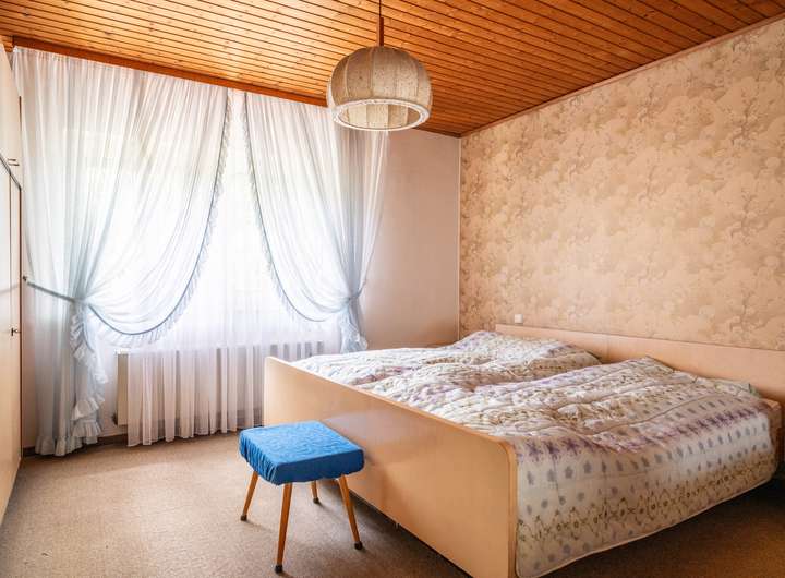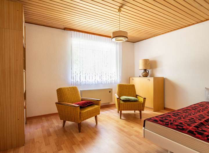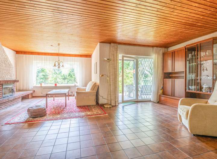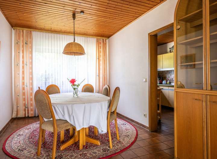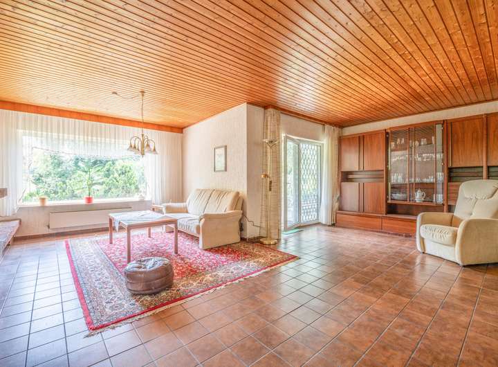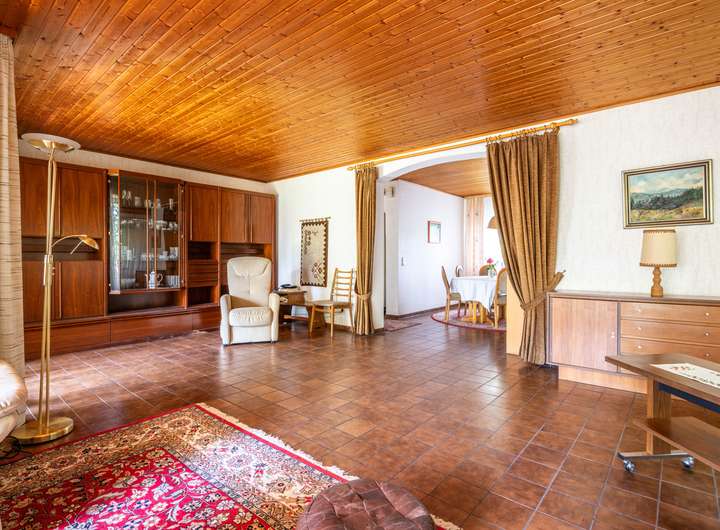 Dieser Einfamilienhaus Bungalow mit einer Wohnfläche von ca. 179 m² und einem riesigen Gartengrundstück von ca. 3.565 m² befindet sich in beliebter Ortsrandlage von Frankfurt-Eschersheim. Es erwarten Sie ein großzügiger Wohn- und Essbereich mit Zugang auf die Terrasse und eine separate Küche, inkl. Einbauküche. Des Weiteren sind ein geräumiges Schlafzimmer, zwei vom Platz angemessene Kinder- / Arbeitszimmer, ein Tageslichtbad mit Dusche und Wanne sowie ein Gäste-WC mit Fenster vorhanden. Das Haus ist voll unterkellert. Hier stehen Ihnen neben dem Heizungsraum mit Zugang zum Garten, ein Abstellraum, ein großer Hauswirtschaftsraum, ein Tageslichtbad mit Dusche sowie zwei weitere Zimmer zur Verfügung. Das Highlight der Immobilie ist das große Gartengrundstück mit einem herrlichen, alten Baumbestand, mit kleinen Schuppen und einer separaten großen Zufahrt sowie acht PKW-Garagen mit davorliegenden Stellplätzen.