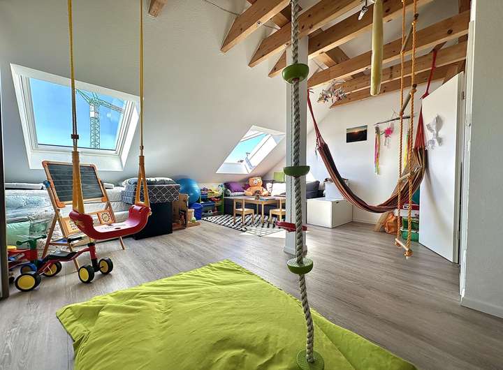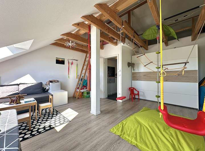 - ein großer Raum, der wiederum in zwei Zimmer unterteilt werden kann, zusätzlich mit kleiner Galerie ideal als Spielparadies oder Rückzugsort für die Kinder