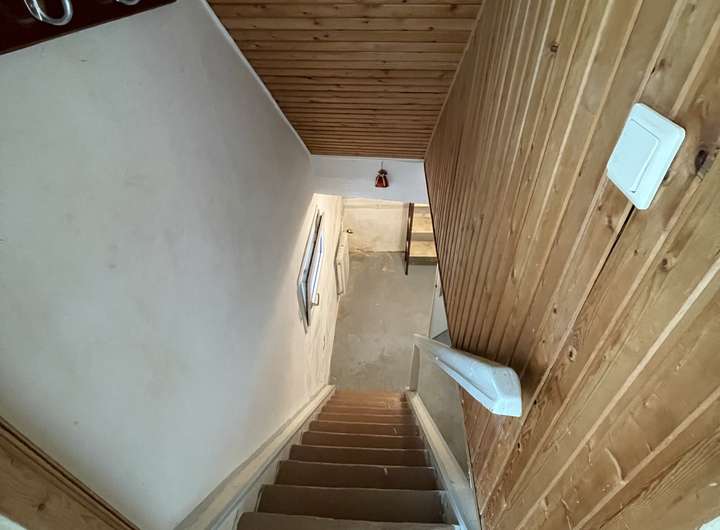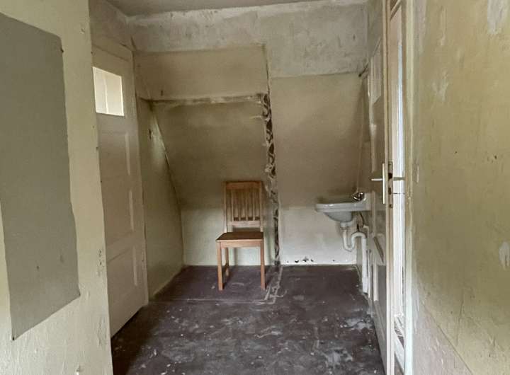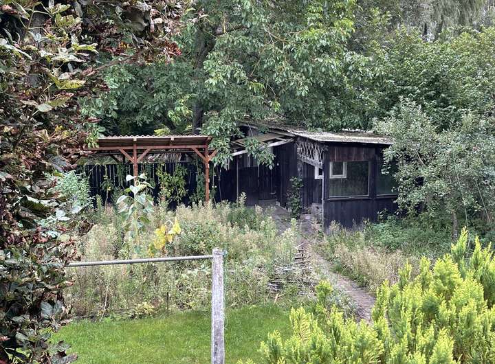 Das Bestandsgebäude umfasst vier Zimmer und ist einfach ausgestattet. Der aktuelle Zustand ist stark sanierungsbedürftig; ein Abriss ist zu empfehlen. Auf dem Grundstück befinden sich zudem mehrere kleine miteinander verbundene Hütten, die vom früheren Eigentümer für ein selbstbestimmtes, autarkes Leben genutzt wurden – ein charmantes Relikt vergangener Tage, das zusätzlichen Gestaltungsspielraum bietet.