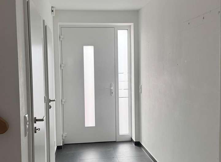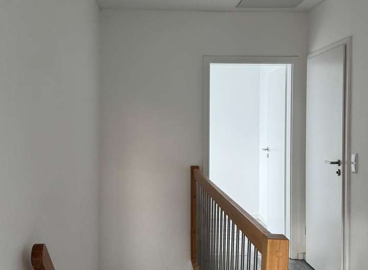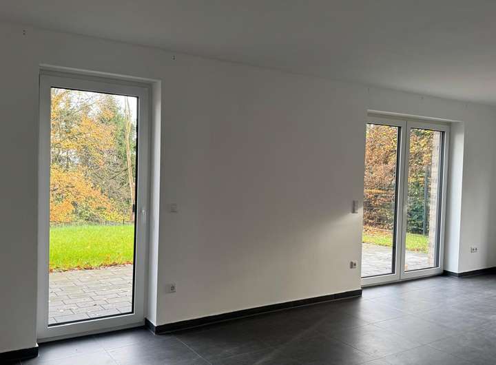 Die moderne Doppelhaushälfte lädt durch seine großzügigen und lichtdurchfluteten Wohnräume ein. Vom Wohnzimmer aus erreichen Sie die Terrasse und Zugang zum weitläufigen Garten mit Aussicht auf Felder und viel Natur.