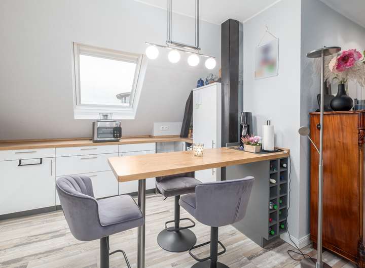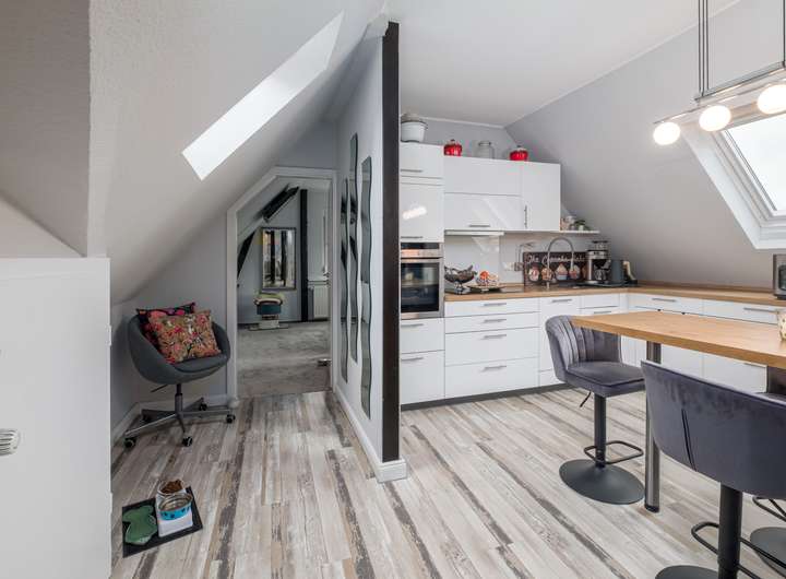 Diese charmante 2-Zimmer-Dachgeschosswohnung befindet sich in Bad Schwartau, im 2. Obergeschoss eines gepflegten Mehrfamilienhauses aus dem Jahr 1902.