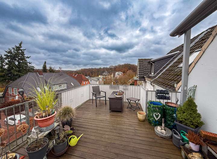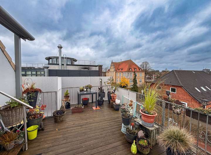 Die großzügige Dachterrasse, die geschmackvolle Modernisierung und die zentrale Lage machen sie zu einem echten Liebhaberstück.
