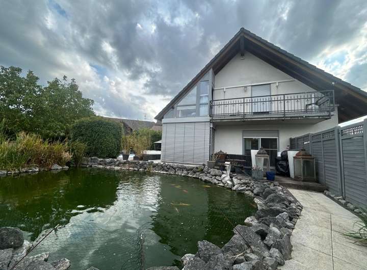 Der liebevoll gestaltete Außenbereich lädt mit einem Pool, einer Sauna sowie dem großen Koiteich zu entspannten Stunden im eigenen Gartenparadies ein.
