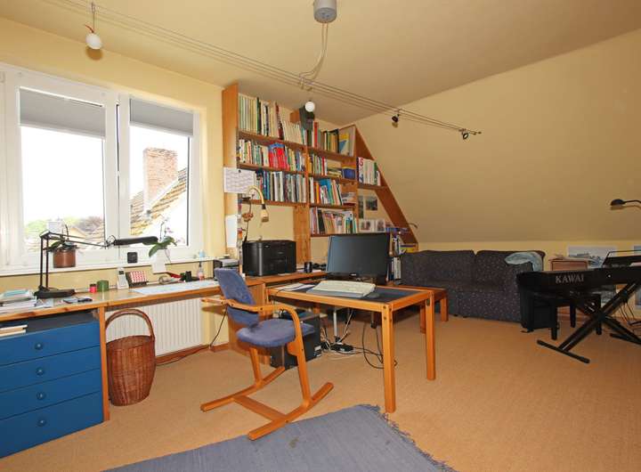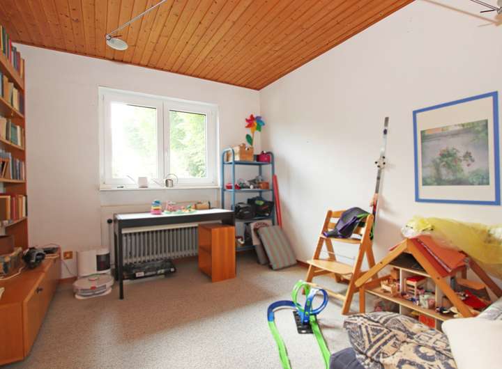 Das Herzstück des Hauses ist das helle und großzügige Wohnzimmer, das 2023 umfassend renoviert wurde und mit großen Fenstern sowie einem breiten Schiebeelement zur Terrasse für ein angenehmes Wohngefühl sorgt. Im Erdgeschoss befinden sich außerdem ein weiteres Zimmer, das sich ideal als Kinder-, Gäste- oder Arbeitszimmer eignet, sowie ein modernes Duschbad.