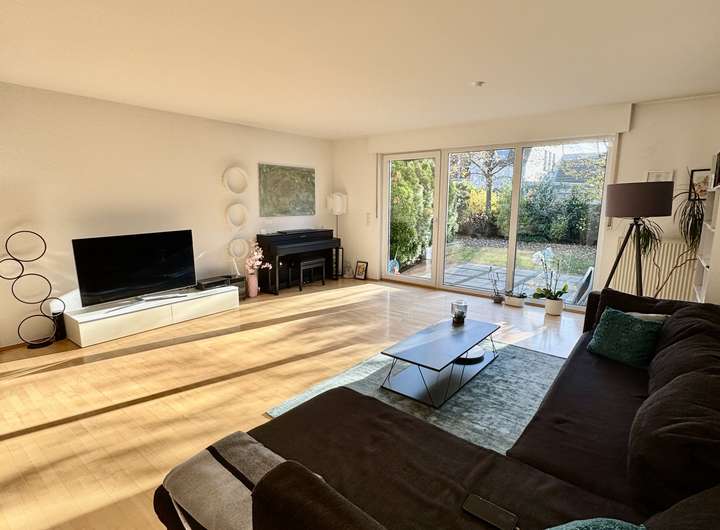 Der Garten mit Südausrichtung lädt zum Verweilen ein.