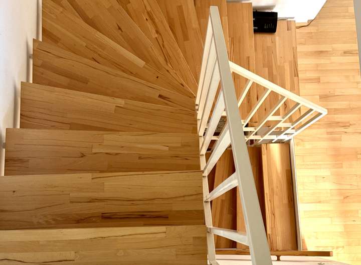 Die Böden der Wohn- und Schlafräume sind mit Eichenparkett ausgelegt, die Diele weist einen Granitboden auf. Die Fenster haben Rolläden und zusätzlich maßgefertigte Jalousien. Die Bäder sind ganz in Weiß gehalten. Großzügige Fenster sorgen für eine Helle und freundliche Wohnatmosphäre im ganzen Haus.