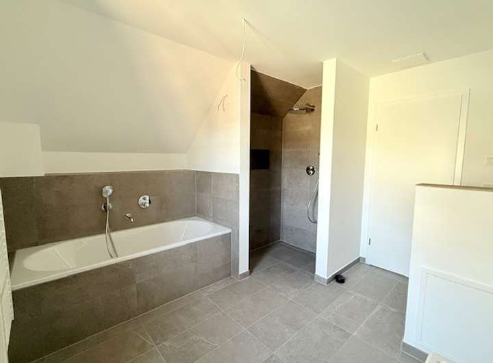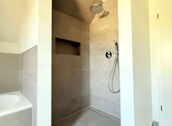 - Gemeinsames En-suite-Bad mit Dusche und Badewanne