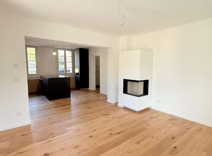 - Großzügiger, offener Wohn- und Essbereich mit historischem Flair