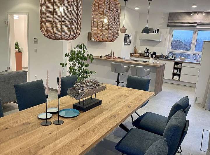 Die gehobene Ausstattung lässt keine Wünsche offen. Genießen Sie die Vorteile der verschiedenen Bodenbeläge: Fliesen sind pflegeleicht und ideal für feuchte Räume, Laminat bietet eine warme Optik und ist robust, während der Teppichboden für eine behagliche Atmosphäre sorgt. Die innovative Wärmepumpe sorgt nicht nur für eine umweltfreundliche Beheizung, sondern auch für niedrige Energiekosten und ein angenehmes Raumklima, entsprechend dem KFW55 Standard.