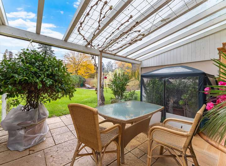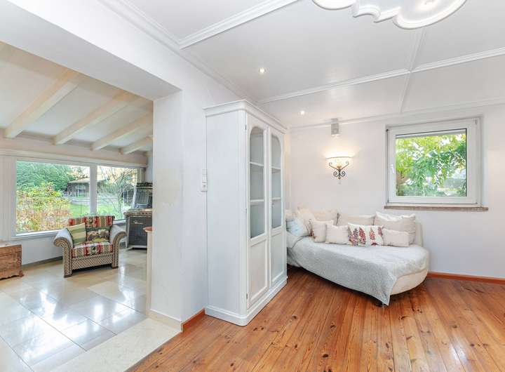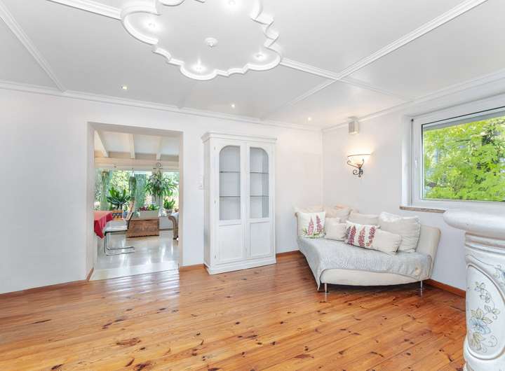 Im Jahr 2003 wurde das Haus durch einen großzügigen Wintergarten und zwei Dachgauben erweitert, wodurch zusätzlicher Raum und ein harmonisches Wohngefühl entstanden sind. Insgesamt stehen rund 100 m² Wohnfläche auf Erdgeschoss, Dachgeschoss und ausgebautem Dachspitz zur Verfügung, ergänzt durch ein Kellergeschoss mit praktischen Nutzräumen.