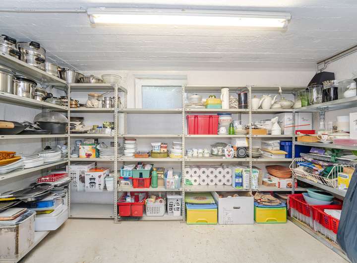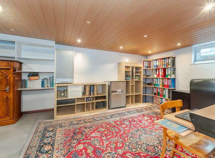 Das Kellergeschoss hält neben einem Hobbyraum auch eine Waschküche und einen Vorratsraum bereit. Die Beheizung der Wohnräume erfolgt über eine gasbetriebene Warmluftheizung (Bj. 2006), Wintergarten und Bad verfügen über elektrische Fußbodenheizungen.