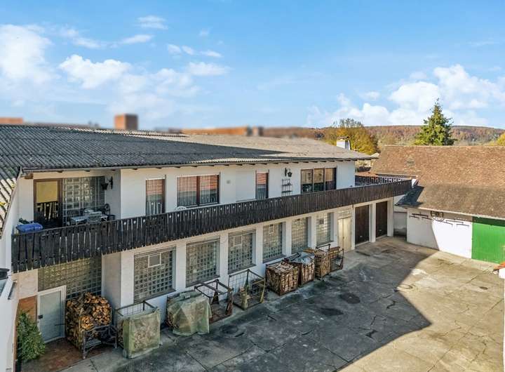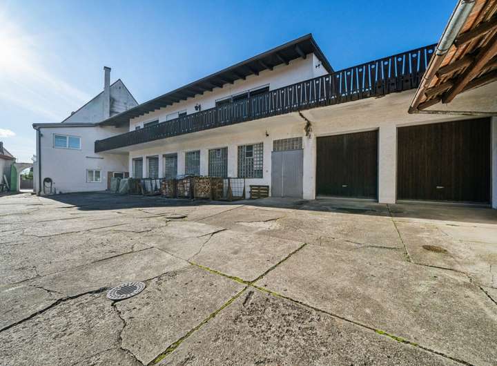 Das Haupthaus (Baujahr ca. 1700) verfügt im Erdgeschoss über eine Grundfläche von ca. 280 m² und ist teilunterkellert mit ca. 88 m² Nutzfläche. Im Obergeschoss befinden sich Wohnräume mit ca. 280 m². Hier war früher eine gut eingeführte Metzgerei untergebracht.
