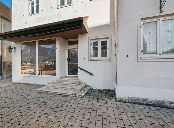 Im Erdgeschoss ist eine gewerbliche Nutzung denkbar (z. B. Ladenlokal, Büro oder Praxis), darüber bzw. rückwärtig Wohnräume.