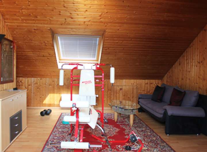 Das Dachgeschoss ist ausgebaut und hat zwei große Fenster. Der Raum bietet viel Platz und kann als Büro / Gästezimmer / Hobbyraum u.a. benutzt werden.