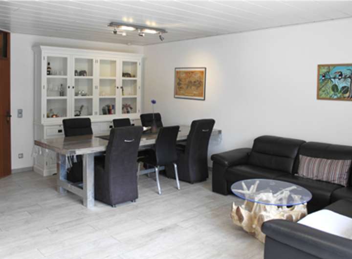 Im Erdgeschoss befinden sich der Empfangsbereich / Flur, ein großes Wohnzimmer mit Zugang zur Terrasse, eine neue Küche (2014) und ein Gäste-WC.