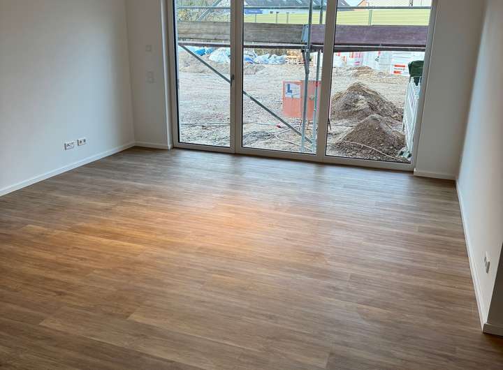 Bodenbeläge: Alle Räume mit Ausnahme der Bäder, Hauswirtschaftsräume und Wohnungsfluren erhalten PVC- Bodenbeläge in Optik Holz oder Fliese.