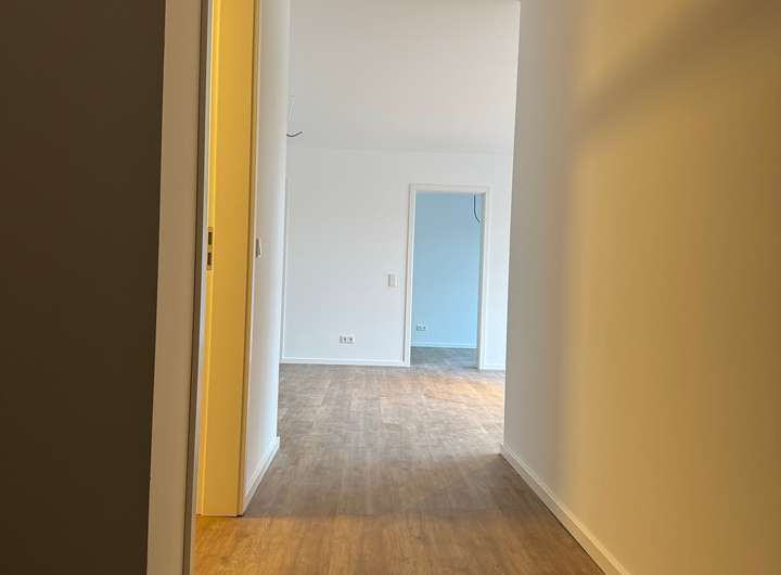 Die Innenwände der Wohnung werden verputzt mit Gipsputz. Die weitere Bekleidung mit Malervlies (Qualitätsstufe Q3) oder Vliestapeten beklebt und weiß gestrichen. Trockenbauwände gespachtelt und weiß gestrichen.