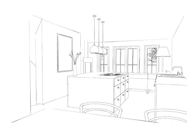 Im Erdgeschoss befindet sich der großzügige Wohn- und Essbereich mit offener Küche als Mittelpunkt für gemeinsames Wohnen und Wohlfühlenund und dem direktem Zugang zur Süd-Terrasse und in den Garten. Ein Kaminanschluss ist vorbereitet und sorgt im Winter für gemütliche Atmosphäre.