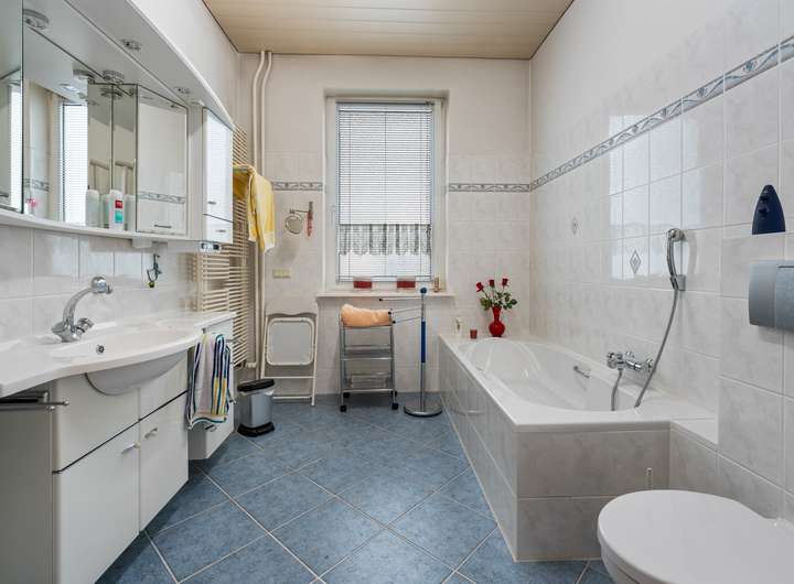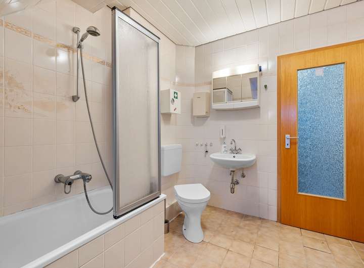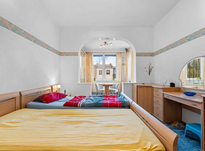 Im Hochparterre befinden sich zwei helle Zimmer, die sich ideal als Schlafzimmer, Büro oder Gästezimmer eignen, sowie ein großes Badezimmer, das mit seiner Größe und Funktionalität überzeugt.