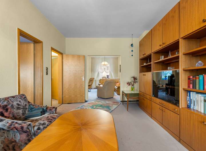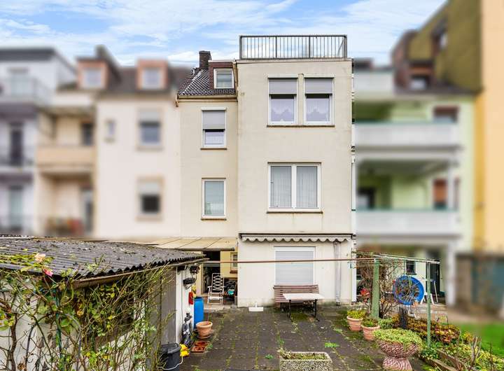 Dieses großzügige Zweifamilien-Reihenhaus aus dem Baujahr 1927 besticht durch seine klare Raumaufteilung, hohen Decken und die vielseitigen Nutzungsmöglichkeiten. Es bietet auf mehreren Ebenen viel Platz für individuelles Wohnen und Arbeiten. Das Haus ist vollunterkellert, wobei der Keller nicht nur zusätzlichen Stauraum bietet, sondern auch direkten Zugang zur Terrasse und zum Garten ermöglicht.