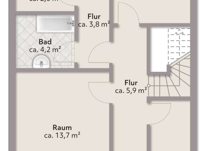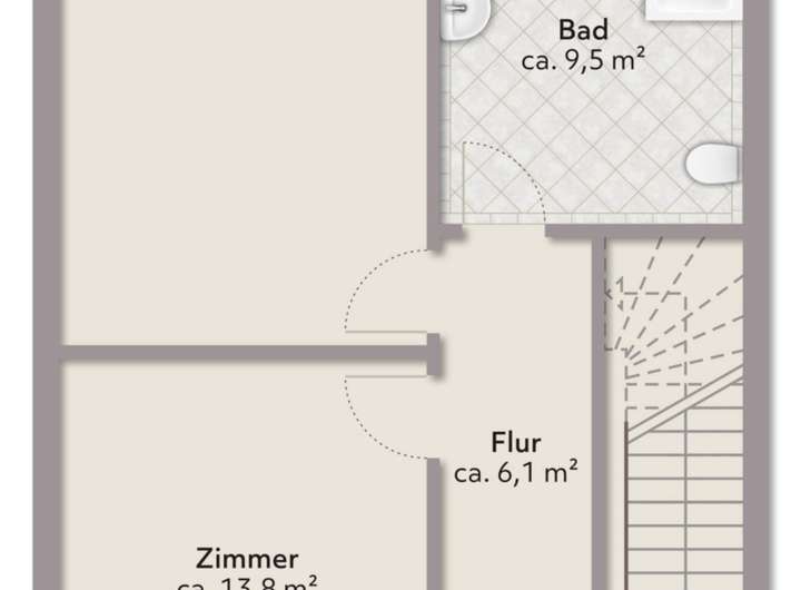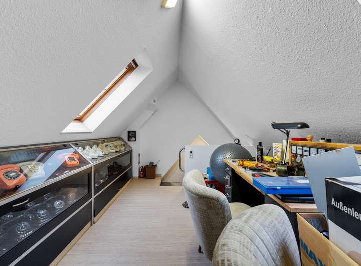 Über eine Treppe gelangen Sie in ein kleines, ausgebautes Dachstudio, das als Hobbyraum, Homeoffice oder zusätzlicher Rückzugsort genutzt werden kann.