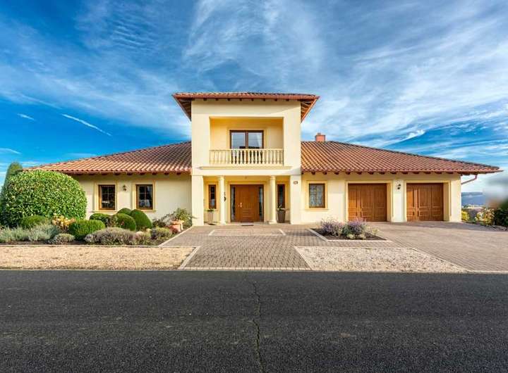 Die Villa wurde massiv mit Wärmedämmstein und Isolierputz errichtet, das Dach ist gedämmt und mit roten mediterranen Pfannen gedeckt. Insgesamt stehen ca. 353,68 m² Wohnfläche sowie großzügige Nutzflächen zur Verfügung. Barrierefreies Wohnen auf einer Ebene, Arbeiten und Wohnen unter einem Dach oder die Nutzung als Mehrgenerationenhaus sind problemlos möglich.