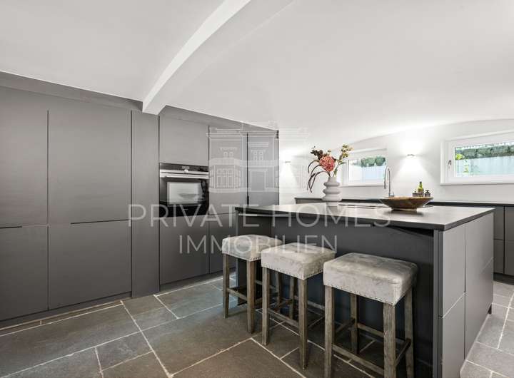 - Moderne Einbauküche mit Essbereich im Gartengeschoss