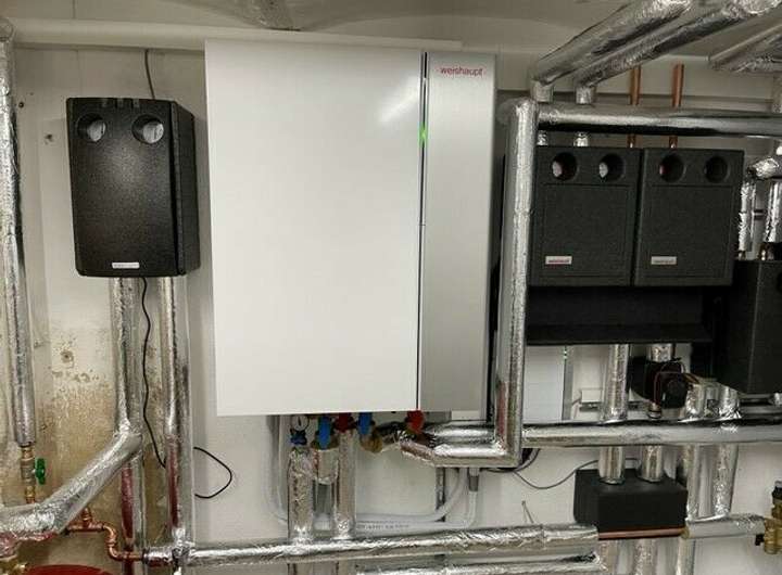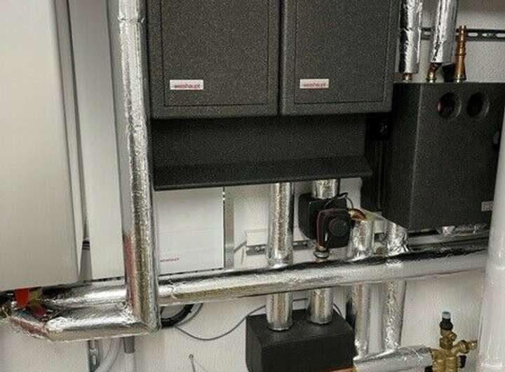 Die alte Gasheizung wurde 2021 gegen eine Luftwärmepumpe der Fa. Weishaupt getauscht mit Zusatzmodulen für weitere Ausbaustufen. Neuer Elektrozählerschrank.