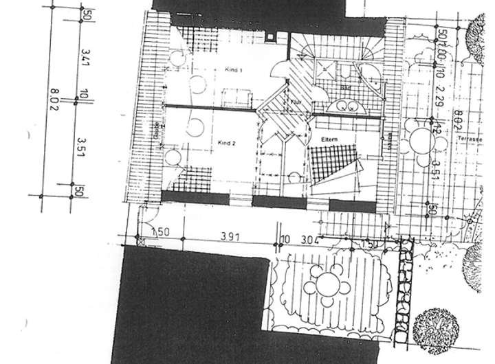 - EG: Wohn/-Essbereich, Küche, Flur mit Garderobe, Abstellraum, DU/-WC, Terrasse