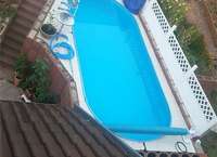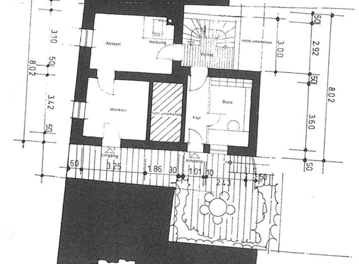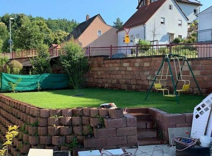 Im Garten ist ein Pool Oval 3x7m 1,35 tief in die Erde eingelassen. ca. 50m² Rollrasen und eine betonierte Fläche, um im Sommer zu sitzen. Das Haus ist unterkellert (Gewölbekeller).