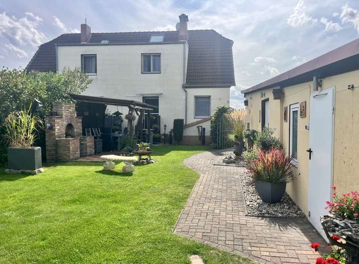 Diese besondere Doppelhaushälfte liegt in einer ruhigen Wohnstraße von Rathenow, ideal für Familien, die ein naturnahes Umfeld mit guter Infrastruktur schätzen. Einkaufsmöglichkeiten, Schulen und Kitas sind schnell erreichbar.