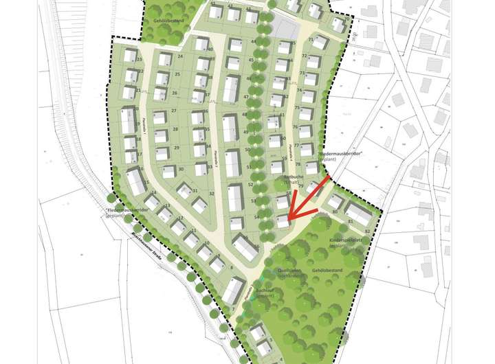 Das hier zum Verkauf angebotene Grundstück mit der Parzellennummer 57 umfasst 592 m² und liegt im westlichen Bereich des Neubaugebietes.