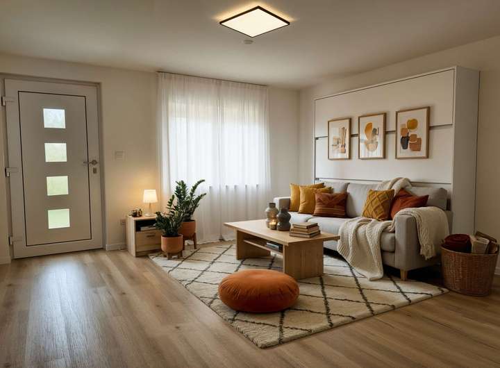 Hinweis: Die Bilder wurden mit Hilfe von Künstlicher Intelligenz möbliert. Die Bilder mit KI-Möblierung lassen das Apartment etwas größer wirken als es ist.