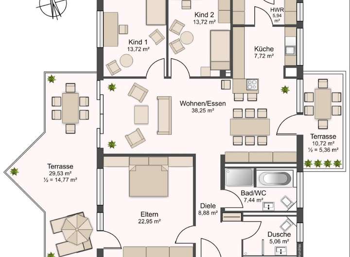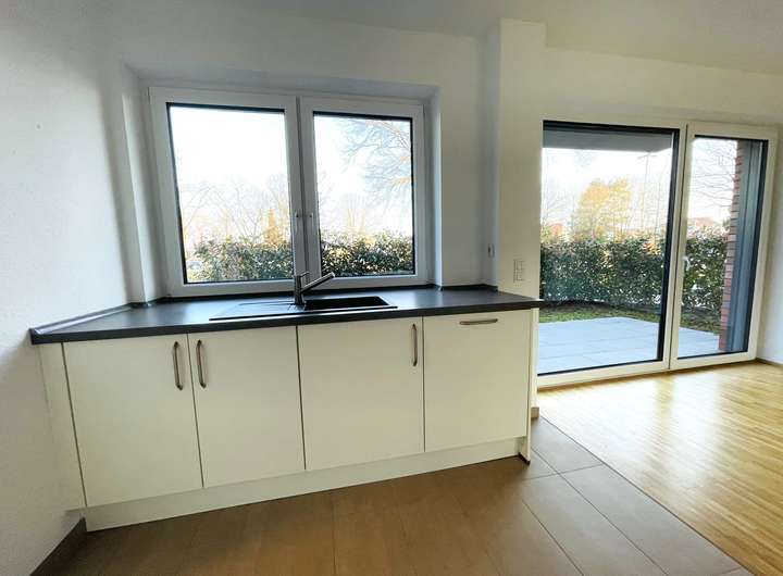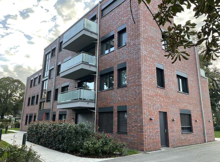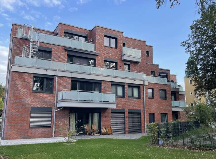 Modern, zentral, harmonisch. Die großzügige 4-Zimmer-Wohnung befindet sich im Erdgeschoss des modernen und zentral gelegenen Mehrfamilienhauses. Das Wohnensemble in solider Bauweise mit roten Verblendsteinen besteht aus sieben Wohneinheiten verteilt auf vier Etagen und wurde Ende 2021 fertiggestellt. Individualität und Harmonie in familiärer Atmosphäre wurden hier groß geschrieben. Das moderne Wohnhaus empfängt seine Bewohner mit einem repräsentativen Eingangsbereich, welcher in das Treppenhaus übergeht. Schon beim Betreten der Wohnung fühlt man sich durch das gut durchdachte Raumkonzept willkommen. Die Aufteilung der Räume ist ideal für Familien und/oder bietet genügend Platz für das Arbeiten im Homeoffice. Vom Eingang linker Hand befindet sich direkt das großzügige Elternschlafzimmer mit Zugang zur westlich ausgerichteten Terrasse. Vom Eingang rechter Hand sind die beiden Tageslichtbäder der Wohnung gelegen. Das Masterbadezimmer verfügt über eine Badewanne, eine separate Dusche und ein WC, das angrenzende Gästebad über ein Duschbad mit WC. Mittelpunkt der Wohnung ist in jedem Fall das zentrale Wohnzimmer mit dem einladendem Wohn-Essbereich, wo Familie und Freunde zusammenkommen. Von hier aus gelangt man sowohl in die beiden Kinder-/Gästezimmer, wie auch in die offene Einbauküche mit anschließendem Hauswirtschaftsraum. Das gut durchdachte Konzept wird durch die beiden Terrassen unterstrichen. Auf der östlichen Frühstücksterrasse (Zugang vom Essbereich) genießt man die Sonne in den Morgenstunden, auf der westlich ausgerichteten Hauptterrasse (Zugang vom Wohnbereich) in den Abendstunden. Sowohl das Bad wie auch die Küche sind mit qualitätsvollem Fliesenbelag ausgestattet. In den Wohn- und Schlafzimmern präsentiert sich ein hochwertiges Eichenparkett. Alle Räume sind mit einer Fußbodenheizung ausgestattet. Die Fenster verfügen über elektrisch betriebene außen liegende Jalousien, sowie Schallschutzfenster bieten straßenseitig einen zusätzlichen Lärmschutz. Der Mietpreis für die Garage ist bereits in der monatlichen Kaltmiete inbegriffen. Die Garage ist mit einem automatischen Tor ausgestattet. Die Fenster- und Türübergänge sind rollstuhlgerecht hergestellt. Insgesamt bietet diese Wohnung einen wirklichen Wohntraum mit moderner Ausstattung in gemütlicher kleinstädtischer Umgebung. Aus Diskretionsgründen werden keine Innenaufnahmen von der Wohnung veröffentlicht.