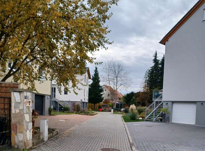 Das fußläufig von der Pirnaer Altstadt entfernte, unbebaute Grundstück ist Teil einer kleinen Siedlung von nur vier Einfamilienhäusern. Von der kleinen Anliegerstraße, von der jeder Eigentümer ein Viertel besitzt, erreicht man jedes der vier Grundstücke direkt.