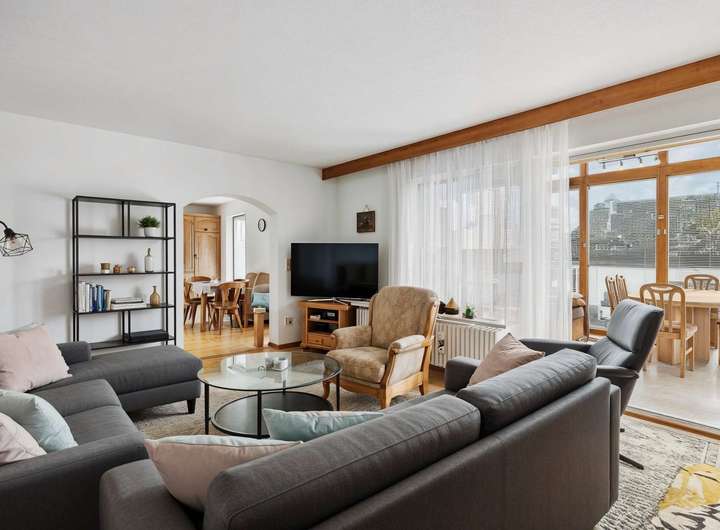 Im Erdgeschoss erwartet Sie ein weitläufiges Wohnzimmer mit direktem Zugang zum beheizten Wintergarten aus dem Jahr 1992. Die großzügige Wohnküche grenzt unmittelbar an den Wohnbereich an und bietet kurze Wege. Von hier aus gelangen Sie auf die überdachte Terrasse und in den gepflegten Garten. Ein Elternschlafzimmer, ein Kinderzimmer sowie ein Tageslichtbad komplettieren das Erdgeschoss.